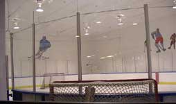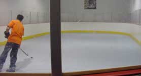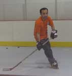 それは小さなショッピングセンターの一角にあった。その名も「Slap Shot Hockey Lanes」。リンクに付属したショップがあるものと思いこんでいたのだが,確かにリンクはあった。ただし,シュート練専用の小型リンクが4面ほど。なるほどこれがLanesなのか。Lanesとはまさにボーリングのレーンである。ここに1人寂しく入ってひたすらパックを打ち込むのだ。ゴールの上には速度計表示板も備わっている。なんと小型のアイスリンク(2on2ならできるか)まであるじゃないか!このビジネスを考案した御仁に拍手!まずはなにはともあれショップを拝見。どちらかというとBAUERを中心とした硬派な品揃え。やっぱり日々これ練習に精進するホッキーナッツ相手の商売なのか。値段は可もなく不可もなくといった程度。あんまり購買欲をそそるものはない。と見計らってしまうと,こんどはこの施設のメイン,Hockey Lanesが無性に気になってきた。果たしてどんなヤローがここで練習するのであろうか?ショップに隣接したレーンでは男が1人黙々とシュートを放っている。ちょうどショップの窓からレーンが見える(いや,見せているか)ので,さっそく覗いてみた。するとオレンジ色のT−シャツを着た小柄な男子ある。背格好からみると少年かと思われたが,よくよく見ると東洋人である。さらによくよく見ると,なんか見覚えがある。まさかと思って凝視すると,そこには一心不乱にシュートを放つS原氏がいるではないか!一同が唖然としていると,その視線を感じたのかS原氏も我々に気がついた。ガラス越しに挨拶をする。こんなとこで熱心に練習してるとはホッキーマンの鏡である。さらに極小リンクの周辺をみると既に練習を終えたのか,お仲間のカジノ王S氏も練習を見守っていた。現在施設内の東洋人比率は70%を越えている。あとは中学生3年生くらいの男の子がお父さんらしきおじさんにコーチしてもらっているのみである。通路に出てS原氏の練習ぶりを拝見させてもらう。しばらくすると練習を終えたS原氏は爽やかな汗をぬぐいつつリンクから上がってきた。シュート練を満喫したS原氏一行は「お先に」といって引き上げていった。
