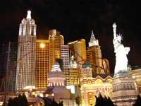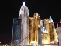 本日の目標はミニ摩天楼がそびえるホテル,ニューヨークニューヨークである。15分ほど歩いてやっとたどりついた。まずは中のカジノをチェック。ここも見事にショーアップした世界である。建物をすり抜けて摩天楼の見える側に出た。摩天楼好きにはたまらない光景が展開されている。その摩天楼の中を時折ジェットコースターが「キャアアアァァァァ!!」という絶叫とともに駆け抜けていく。子供心に思い描いた世界が目の前に実現している,そんな大人げない街である,ラスベガス。