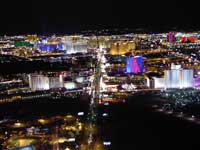 確かに強風である。これではさすがに逆バンジーも運休であろう。そしてベガスと言えど夜は寒い。しかし景色は抜群にいい。ダウンタウンから新規ホテル群まで一望でき,その背景を旅客機が絶え間なく発着している様は人間の果てなき欲望を垣間見るようで少し哀愁が漂っているように感じた。ここぞとばかりにコイン式双眼鏡の上にデジカメを固定して夜景を写す。