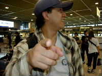 両替を済まして集合場所の搭乗カウンターに行く。すでに団長と選手が数名来ていた。まだ時間があるのでかな1号と筆者今度はおもむろに東○海上○災のカウンターに。お約束の海外傷害保険に加入を試みる。大人の意地で筆者かな1号よりランクの上の保険に加入する(←これはまったくの無駄であったことが判明)。スタッフのK王さま発見。今回記念すべき1枚目の写真に収めた。まだ時間があるので,各自本屋などで時間をつぶす。