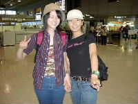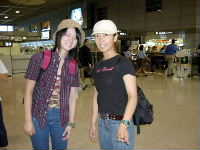 老人問題が解決されやっと我らの番に。しかし,巨大な荷物と棒類を持参した当団体はさらに別なカウンターへとたらい回しされたあげく,さらに20分ほど待たされた。しかたないのでまたまた当編集部女性陣のチャーミングなお姿をお楽しみください。