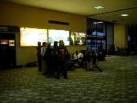 1日弱かけてやっとのことでFortMyersに到着せり。スタッフと編集長はレンタカーの手配に。それまで選手団一同はロビーで待つことに。思ったより時間がかかる。ヒマなので上陸記念撮影を行う。