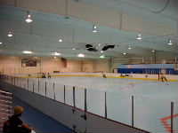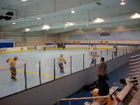 選手団一同練習開始。それを見つめる編集部一同。ちなみに当リンクは2面あり,片方がインライン,売店とキャフェテリアを挟んで反対側にアイスリンクがあった。