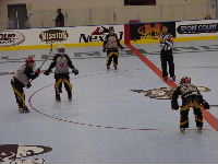 Ducks。1点,いや1勝,いや予選通過,と目標をどんどん突破してきた女子チームであるが,あれよあれよという間にこの試合を勝てば決勝進出である。本日もぜひ試合の詳細についてはMHLのホームページhttp://inline-hockey.org/にて高田夫妻のレポートを熟読していただきたい。結果大差がついてしまったが,試合そのものは点差ほどの差はないと感じた。尚,準決勝で破れはしたが決勝でEPH