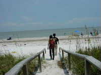 やっぱフロリダ来たからにはビーチ,ということで地元のビーチに向け出発。やっぱ海に近づくにつれてリゾートと潮の香りがクルマにも入ってくる。駐車場にクルマを止めて,徒歩でビーチに。そこはもう白い砂浜と青い海である。これ以上は言葉では表せないのでデジカメくんにバトンタッチ。