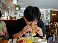海を堪能したところでランチを取ることに。海辺のこ洒落たキャフェみたいなお店に入る。編集長と筆者はシーフードクロワッサンサンドを注文。油断できないほどの量と飽きのくる味で筆者は途中で脱落。編集長は負けるわけに行かないので完食。えらい!ちなみに筆者とエージェントは満腹になりながらも食後アイス屋さんでジェラートをいただく。
