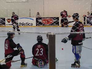 メインリンクに移動してNARChPROの試合を見る。試合は銀ヘル軍団Tour Labeda対Rinkside Rocketsだ。結果は5−5の引き分けだが,やっぱProは速いのなんのって。めまぐるしい展開である。