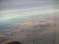 離陸して巡航高度に達すると即座に飲み物とピーナッツの支給。アルコール類は有料である。ゆっくりと飲み終わるともう砂漠の景色,ベガス近郊に到達していた。