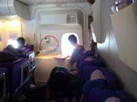 (フライトもそろそろおしまい,免税品の計算でもしてるのでしょうか?)