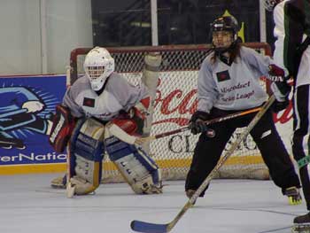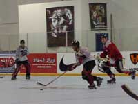 女子の2試合目がサブリンクでフェイスオフ。相手は強豪のCHP Mission Vixensである。やはり強豪だけのことはあり,いいとこまで行くのだがなかなか得点に結びつけることができない。逆に相手はチャンスを確実に決めて得点を重ねていく。残念ながら0−6で負けてしまう。ということでベストショット中心にお送りしましょう。