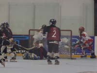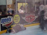 (試合は白熱し,パックが審判に当たってしまいました,痛そう・・・)