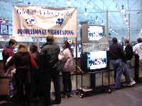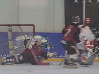試合は最初先行されるも徐々に盛り返し,後半最後のパワープレイで1点差(2−3)まで詰め寄った。ここですかさず作戦タイム。フェイスオフを取ったらゴーリーを上げて5人攻撃をすることに。ゴーリー氏よりベンチ隅に陣取るカメラマン達(筆者と日系人氏)に危ないので退去勧告が通達された。そしてフェイスオフ!見事に日本側がパックをキープ,するとゴーリー氏がものすごい勢いでベンチの飛び込んで来た。残り1分弱(30秒だったかな?)を攻めまくるも相手ゴールを割ることができずに2−3のままタイムアップ。なんとも惜しい試合内容であった。1日早く開始した男子はここで大会終了となってしまった。