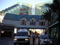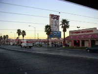 女子チームは試合が早いので一足先に出発。筆者はホテル内を散策。土曜なので昼でも客はかなり入っている。あんま観るものがないので少し外に出てみる。トロピカーナは老舗らしいのだが,やはり周囲の有名ホテルや新興ホテルに比べるとやはり庶民的というか,リーズナブルなホテルらしい。