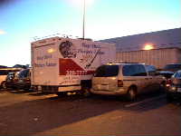 (あれ?なぜかリンクの駐車場にSlapShotLanesのトレーラーが?!)