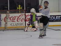 あー,もう1時近いのに試合なんて。でもメインリンクなので,少しドキドキする。ロッカールームはリンクの端のほうにあるのだが,トレーラーハウスより格段に狭い,クサイ,汚いうえパープルという信じられない内装色。