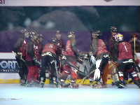ちゅうわけで,試合はまたしても1点差,2−3で老獪なFlingstonesにやられてしまった。スピード,パックの支配率などは優勢だったのだが,なんせ相手は1本のカウンターで確実に1点を決めてくるいやらしいチームであった。さすがOver35,省エネホッケーの見本である。