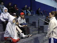 女子の試合がサブリンクで始まる。急いでベンチに。相手はTeam Excaliberという強そうな名前。ぜひとも1勝したいものである。こちらがベンチから試合を撮影していると,もう1人日系人らしきおじさんが1眼レフのデジカメを構えている。昨日からあちこちで遭遇しているのだが,例のデジカメプリントサービス(有料)の専属カメラマンとのこと。試合を撮影しながらも我々を応援してくれているので,話しを聞いてみるとトロントの日系3世らしい。このシステムを導入して友人達と普段はアイス関係会場を回っているとか。今年はNARChも担当している。などといらないことを書いてしまったが,試合の模様は写真でどうぞである。