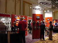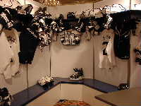 最近ではNHLでもここのヘルメットをよく見るようになりました。わりと某業界のブースによくあるスモークアクリルの商談部屋を設置。派手ではないがエブリデイ・ユースな製品群に好感を感じる。