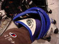一昨年フロリダで初遭遇したスメリーパックであるが,今回はブースを発見。これはホッキー界の王様のアイディア級のおもしろグッズである。なにしろパックをデオドラント(芳香)材が一体化しているのである。しかも香りの種類がいかにもアメリカ臭という感じですばらしい。ちなみに今年の新臭はミントということであった。