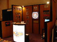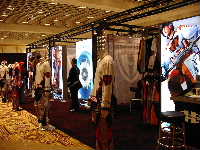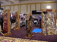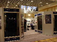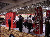 全体のレイアウトは一昨年とあまり変わっていないようだ。廊下を挟んで左側に2室の中型の宴会場,そして右側には当パリスホテルが誇る巨大宴会場に各社ブースが並んでいる。一昨年とおなじく,まずは左側の宴会場に入ってみた。