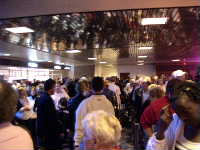 バタバタとSouthwestのカウンターでチェックインし,ゲートに向かう。セキュリティーチェックが長蛇の列になっている。もう金属探知器の性能を最大限にしてるらしく,みんな引っかかりまくっている様子。このままじゃ間に合わないじゃん,とみんな不満顔をしてたら,しばらくして閉鎖中の隣のゲート用のセキュリティーも解放して対応してくれた。