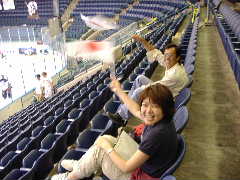 さて本日の2試合目の時間となる。応援団若干3名スタンドに陣取る。と思ったら昨年も来ていた日系の親子も参戦。姐さんが日の丸を渡し,用意万端である。
