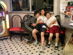 結局ステーキバーガーの店に入り,テイクアウトを頼むことに。各自いろいろと頼んだが,ハンドメイドがモットーの店らしく,調理に時間がとてもかかった(いやその前に我々が注文を決めるのにも時間がかかった)。クルマを取りに行ってくれた団長とゆうじくんが帰ってきてもまだ晩飯は登場していないくらい長々と待っているうち寝込む者もちらほらであった。