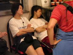 いったんホテルに戻り,各自シャワーなどでさっぱりした模様。今日1日で応援団長に就任したしょうちゃんは筆者の部屋に。晴れてルームメートが出来てめでたい。掲示板への書き込みなど行う。