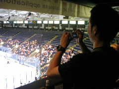 (頂上からアリーナをS505iで撮影するゆうじくん)