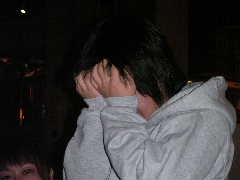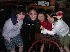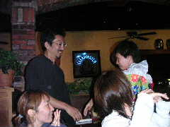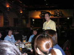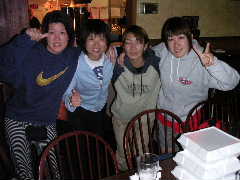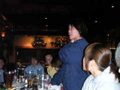 ご歓談の途中ではありますが,今回の遠征を振り返り各自コメントすることに。いままでワイワイやったいたのだが,やはり1人1人この数日(いや,日本で行った合同練習からかな)あった出来事を振り返ると,いろいろと胸に去来することがあるみたいで,わりと感極まってしまったようだ。これは特に後半にコメントする人にとても不利(?)に働き,ちびっこなどはもう声が出ない状態に。かく言う筆者も目の前に目が真っ赤になったのりえキャプテンの顔を見たら(正面にいるのでイヤでも目に入るのだ!),思わず言葉に詰まりそうになり(いや,詰まってたなかなり),最後はしどろもどろになり,何を言ったか覚えていない。そんなみんなの心はひとつになった一瞬であった。最後に団長が来年に向けての活動方針などを述べてしめやかに儀式は終わった。