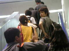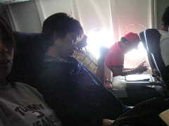 時間がなくなり,荷物セキュリティーに置いたまま搭乗口へ走る。延泊組の団長,よりこ,よっしー,いずみ,ちびっこ,そしてここから西海岸へ1人で飛ぶいくよとあわただしくお別れ。身体検査で筆者の小型ビクトロニクスが引っかかる。カバンに入れておくのを忘れてしまったのだ。時間がないのと,もうかなり壊れていたので,そのまま破棄してもらうことに。ゲートを抜けたらゆうじくんとかなろーが待っててくれた。前の人が見えなくなったので,そのまま行くか筆者と行くか迷ったらしい。結論として筆者を選択したとのありがたいお話しであった。