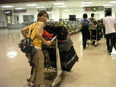 空港に到着。わりとギリギリの時間だ。荷物検査で異常に時間を食う。それもこれも9.11テロのせいだ。ゆうじくんの荷物がX線に引っかかる。係員にスーツケースの開け方を必死に伝授。そしてゆうじくんの私生活がテーブル上にぶちまけられた。