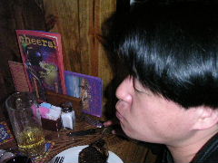 みんなあらかた用事を済ましたので敗残者はとっとと退散することに。それでもお腹がすいていたのでリンク向かいのバーに入る。地ビールで乾杯し,パスタ類を補充。今回の試合を総括したり,来年の抱負を語ったりした,と思う。