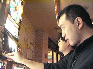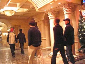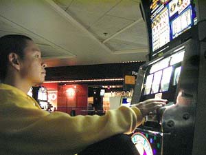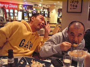 ゴーリーハカイダーキャプテンのお許しをもらったので,遠慮なくカジノに。でもやっぱベガスに比べてなんか地味な機械が多い。あちこちとやっているつもりが,結局2機種を往復してるにすぎない。編集長は少し勝っているらしく,$1コーナーに挑んだ!それをK王,タケヲくんらとともに暖かく見守った。