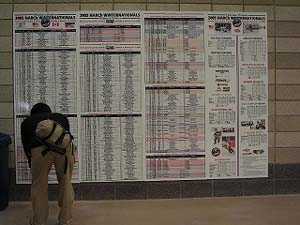 PROの決勝を観るため再び会場に。まずは会場入り口に張られた巨大日程&試合結果ボードでチーム・ミスコンダクトの成績を確認。確かに順位欄に「3rd」という文字が。よかった。次にブロマイドコーナーへ行って写真を受け取る。途中でプリンターが故障したため先に頼んだ数名分しか出来ていなかった。幸い筆者と編集長のは出来ていたので受け取り,出来ていない人のは後日O田氏の巨大ブロマイドとともに団長宅に郵送されることに。