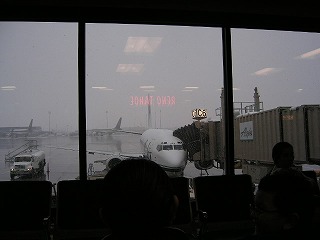 少し遅れて搭乗開始。2人と席が離れたが,PSPは返してくれない。メカトラブルか,離陸も遅れるらしい。