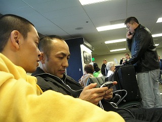飛行中S原氏とタケヲくんはずっと対戦していた模様。ほどなくしてLA到着に到着。、荷物を取りに行くとちょうどNARCh帰りの若者チームも荷物待ち。いかにもお行儀が悪く,しまいには大騒ぎ。周りの大人達に注意され,わりと素直におとなしくなる。やはりホッキープレイヤーはどこに行っても鼻つまみものなのか?!まあ自業自得だな,こりゃ。