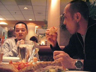 PSPを充電したまま,1階のレストランで夕食。ビールで乾杯し,いろいろな話しで盛り上がる。S原氏とタケヲくんはスキーつながりで昔からの知り合いだったらしい。やはり世間とホッケー界は狭いということを再確認する。面白い話しがいっぱいあったがここでは割愛する。