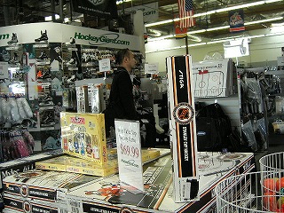 Hockeygiantはいつもどおり大量の在庫で迎えてくれた。しかし,やはりここは品揃えが偏っている。売れ線のモデルはクリスマスで掃けてしまったみたいだ。それでもLouisvilleのResponseXN10のWhipが1本あったのですかさずキープした。S原氏はいろいろと熱心に物色しているがどうもいまいちらしい。タケヲくんは既にお土産購入モードに入っている。
