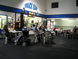 満腹になったところでリンクに。アイスとインラインと2リンク併設の施設である。フロントのおねーちゃん(アメリカンサイズ)にお金を払って入場。アイスのほうはフィギュア系の子供達がちらほらといたが,インラインのほうは3名くらいしかいない。おねーちゃん(アメリカンサイズ)が開けてくれた更衣室で着替える。そこではたと気がついたが,筆者荷物軽減のためスチック類をK王に託したのであった。しかたなく先に着替えたS原氏がなんとウッドのスチックを借りて来てくれた。
