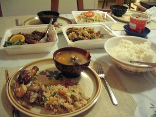 本日の夕食はタイ料理。チャーハンとトムヤンクンがいいかんじ。