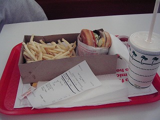 LAではマックやらバーガーキングなどよりこちらのほうが評判いいらしい。「ここのフライはなぁ・・・」などなど従兄弟のうんちくを聞きながらチーズバーガーにかぶりつく。これぞハンバーガー!という味だ。