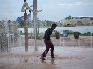 (噴水とたわむれるキャプテン)