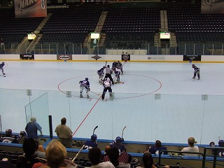 ショックに打ちのめされる間もなく本日の1試合目の時間である。奥側にあるBlue RinkにてFace Off!