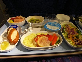 (ほんとあっさり味です、アメリカ系機内食とは対極だ)