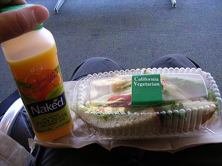 お腹が空いたのでサンドイッチとオレンジジュースを購入し、空いているラウンジで食べる。