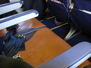 なんとか搭乗ゲートに到着。しばらくすると搭乗が開始した。今回はネット予約のため席をあらかじめ指定できた。エコノミーの前方通路側に席を取ってある。さらに減塩食というのがあったので、最近人間ドックで血圧高め塩分控えよ、と診断されたので予約してみた(そのあとアメリカでの食事を考えると全く意味がないけどさ)。