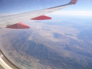30分ほど遅れて搭乗開始、わりと古めの機体がちょっと気になる。離陸し一路フェニックスへ。
