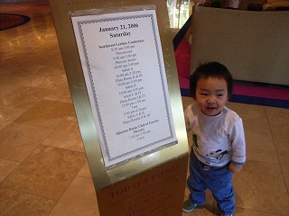 本隊ホテル前に集合。ホテルフロントのWelcome欄を見ると、Southwest Leather Conference様一行と Siberian