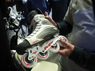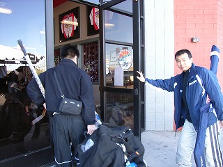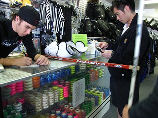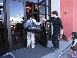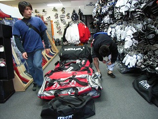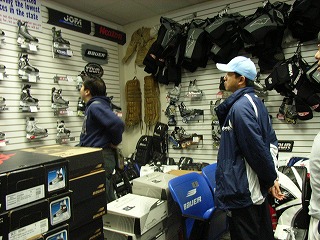 早くも物欲王フェニックス編の火蓋が切って落とされた。まずは団長がWarrior製迷彩柄ウィール付きホッケーバッグとオーナーお勧めのWarriorのStarskieをお買い上げ。ホッケーバッグに穴が空いていたため、オーナー氏が近郊にあるもう1店舗で補修が可能であると店に連絡を入れてくれた。